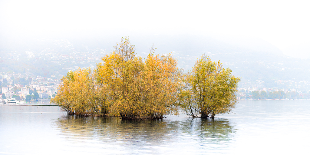 Aber egal, wir lassen uns durch Wettervorhersagen nur selten die Laune verderben. Am Anreisetag haben wir nach dem Check-In im Hotel du Lac noch einen Appetitanregungs-Spaziergang am Lago Maggiore gemacht. Es war kühl und diesig, aber wenigsten trocken.